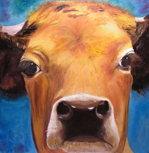 Het is heerlijk om door middel van het schilderen uiting te geven aan mijn liefde voor dieren maar voor de koe in het bijzonder..